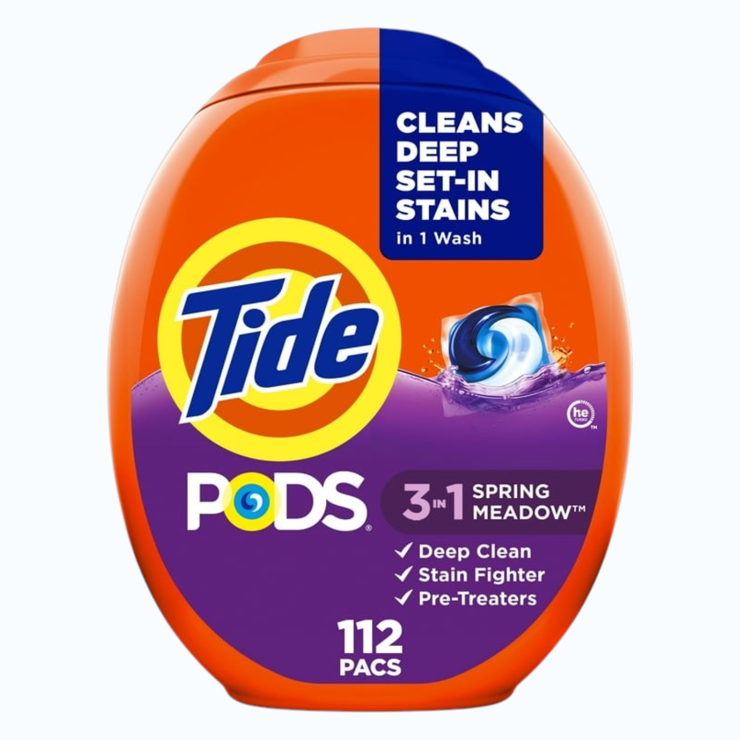 Tide Pods 3 in 1 Spring Meadow, 112 packs, with deep cleaning performance, stain fighter and pre-treaters for practical everyday laundry care.